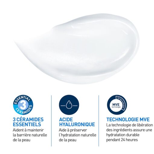 Développé avec des dermatologues, le Baume Hydratant Cerave aide à restaurer la barrière protectrice de la peau. Ce soin nourrissant, enrichi aux 3 céramides essentiels et à l’acide hyaluronique hydrate la peau en continu pendant 48h*, dès la première application.