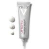 - Le soin yeux anti-rides raffermissant Liftactiv H.A. de Vichy corrige les pattes d’oie, les rides sous les yeux et réduit visiblement l’apparence des cernes.