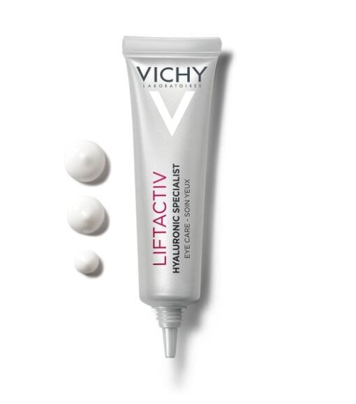 - Le soin yeux anti-rides raffermissant Liftactiv H.A. de Vichy corrige les pattes d’oie, les rides sous les yeux et réduit visiblement l’apparence des cernes.
