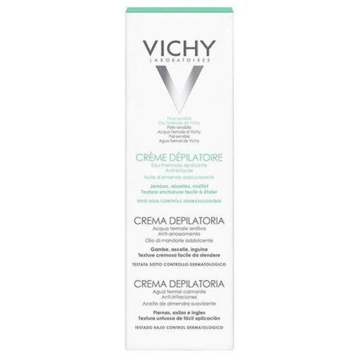 VICHY Crème Dépilatoire élimine en douceur tous les poils. Respectée pendant l’application, la peau est parfaitement nette et douce.